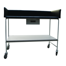 CHANGING TABLE• Mattress padded and covered with washable plastic • Upholsetred on 3 sides • Constructed from metalsheet with epoxy coating • 4 castors, one with brake • 1 Drawer • 1 Lower storage rack • Dimensions: 100 x 60 x 100cm